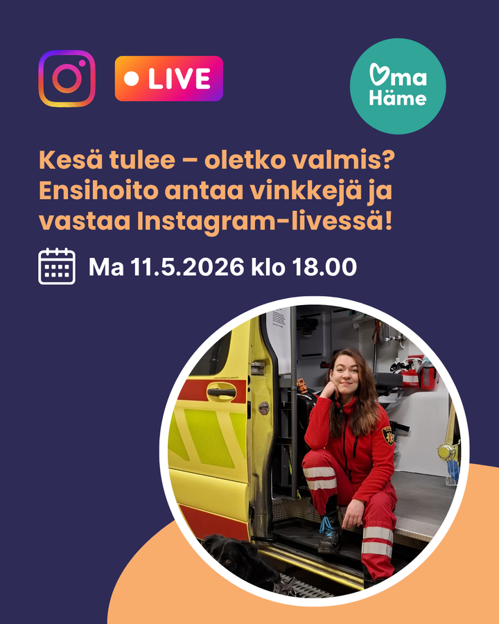 Kanta-Hämeen ensihoito järjestää Instagram-liven maanantaina 11.5.2026 klo 18–19. Livessä ovat mukana ensihoitopäällikkö Antti Rinta-Valkama, ensihoitajat Laura Lahti ja Laura Lappalainen sekä tilannekeskuspäivystäjä Karoliina Kallioportti. Lähetyksessä tarjotaan käytännönläheisiä vinkkejä kesän tyypillisiin ensihoitoa vaativiin tilanteisiin ja vastataan yleisön kysymyksiin.