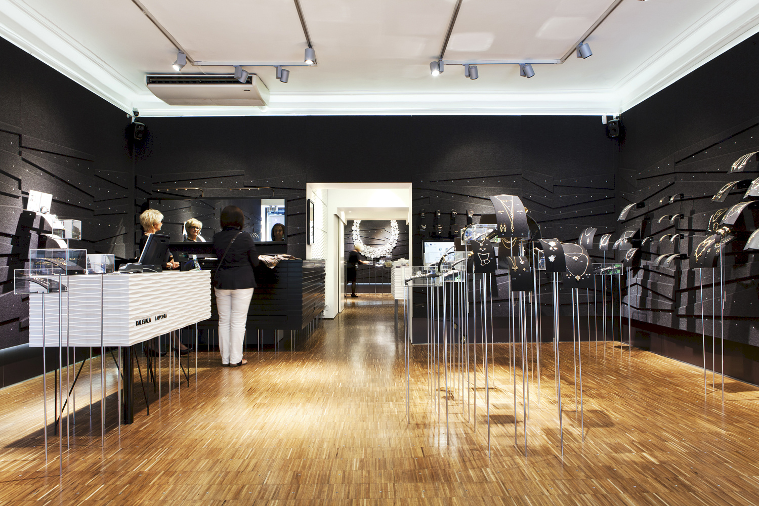 Kalevala Korun Pohjoisesplanadin myymälä on toteutettu asiakkaan näkökulmasta. Myymälässä on kyseenalaistettu perinteiset koruvitriinit ja nostettu korut houkuttelevasti kuluttajan koettaviksi. Korun sylit ovat ainutkertainen ja täysin uudenlainen tapa tuoda korut käyttäjän lähelle, kokeiltaviksi ja kosketettaviksi. Moderni ja ilmava myymälätila on helposti mukautettavissa ja tarjoaa siten hienostuneen taustan koruille.