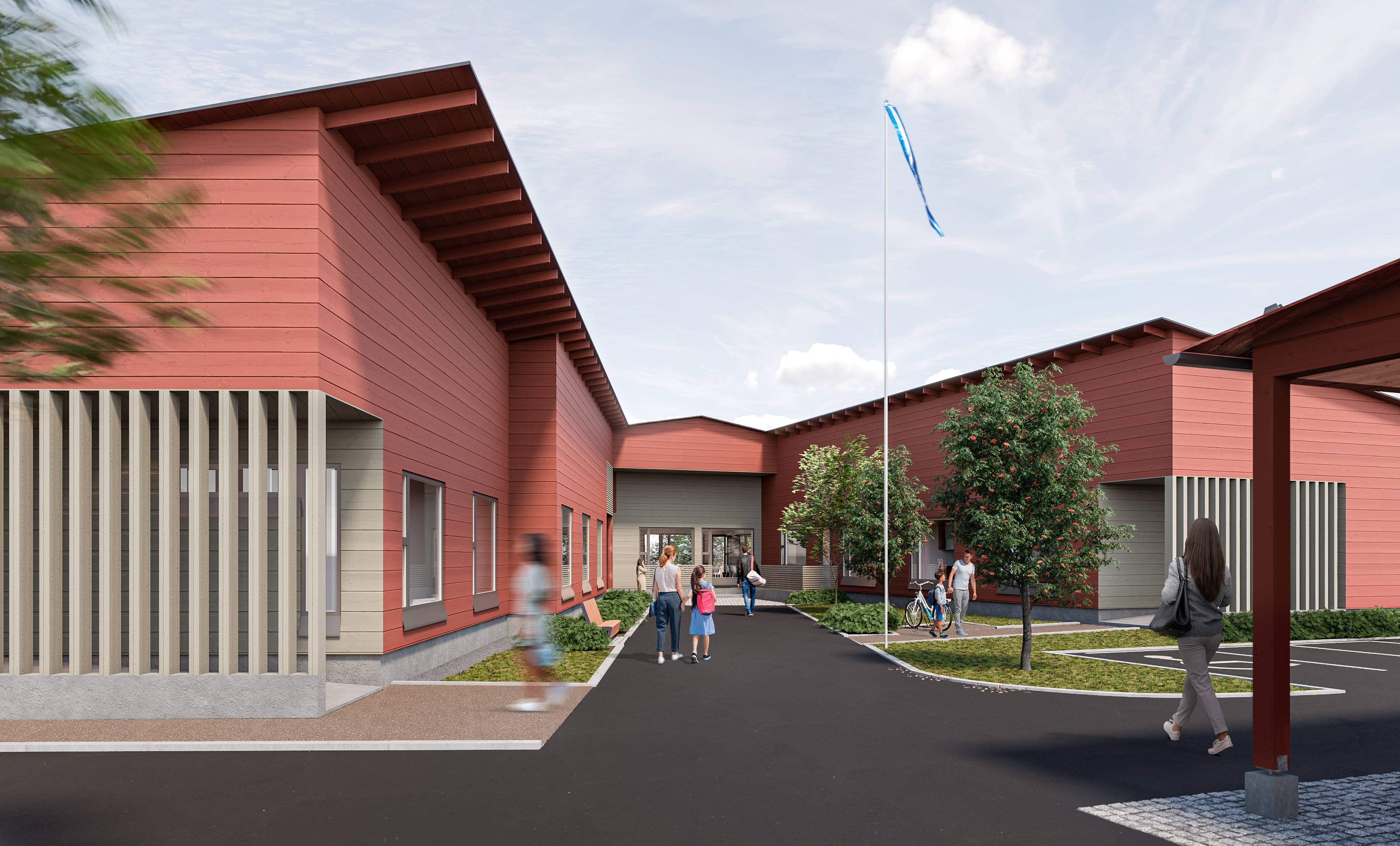 Hoivarakentajat - hirsirakenteinen Humana Mesikämmen, havainnekuva julkisivu.