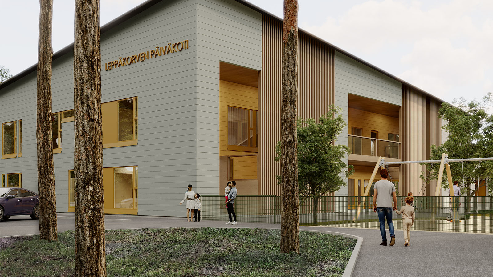 Hoivarakentajat - Leppäkorven päiväkoti Vantaa - havainnekuva pääsisäänkäynti