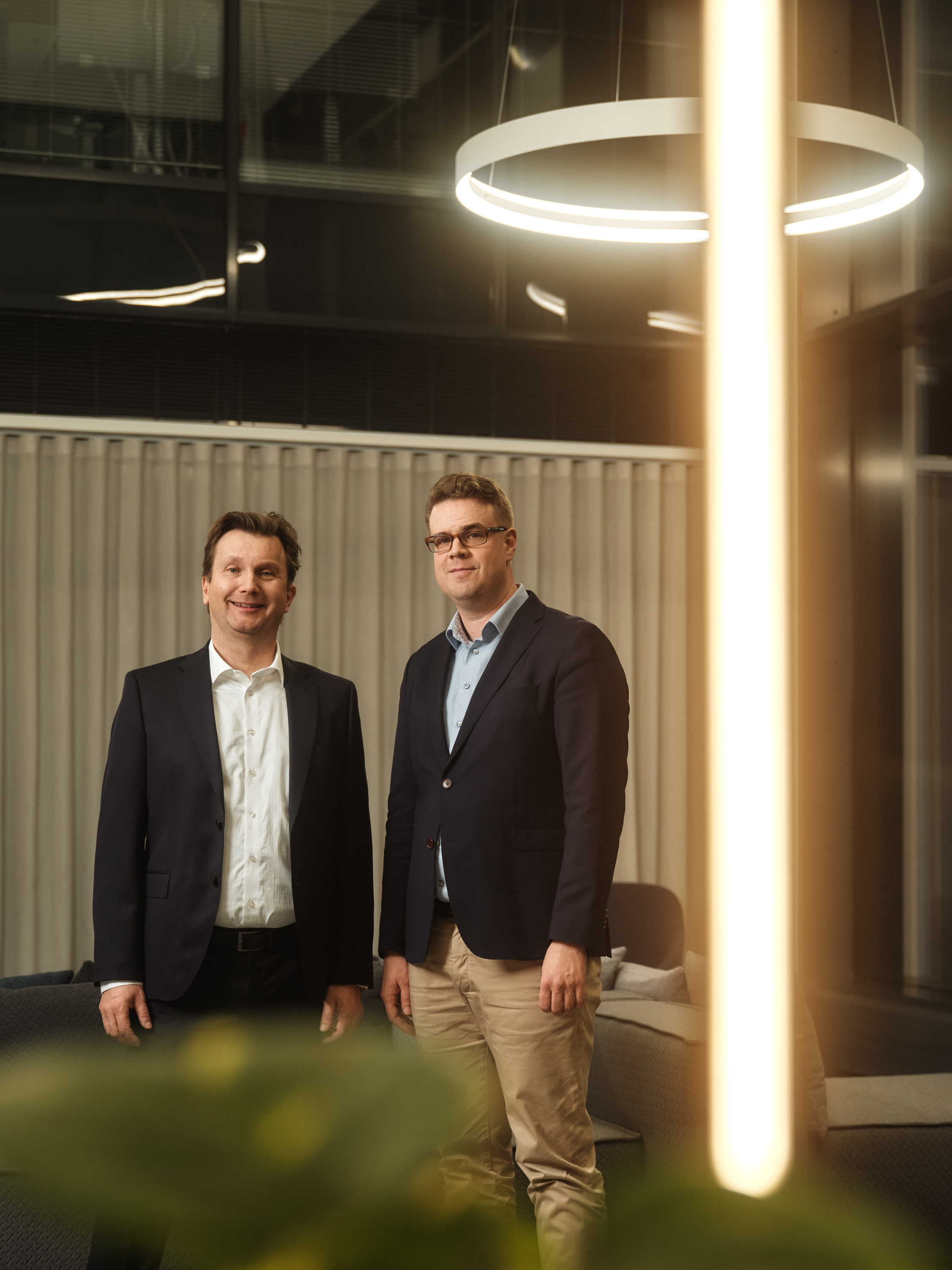 KSS Energian toimitusjohtaja Marko Riipinen (vas.) ja Oomin toimitusjohtaja Tuomas Oksanen ovat varmoja siitä, että KSS Energian asiakkaat saavat Oomista jatkossakin laadukkaita sähkösopimuksia ja niihin liittyviä vastuullisia palveluita